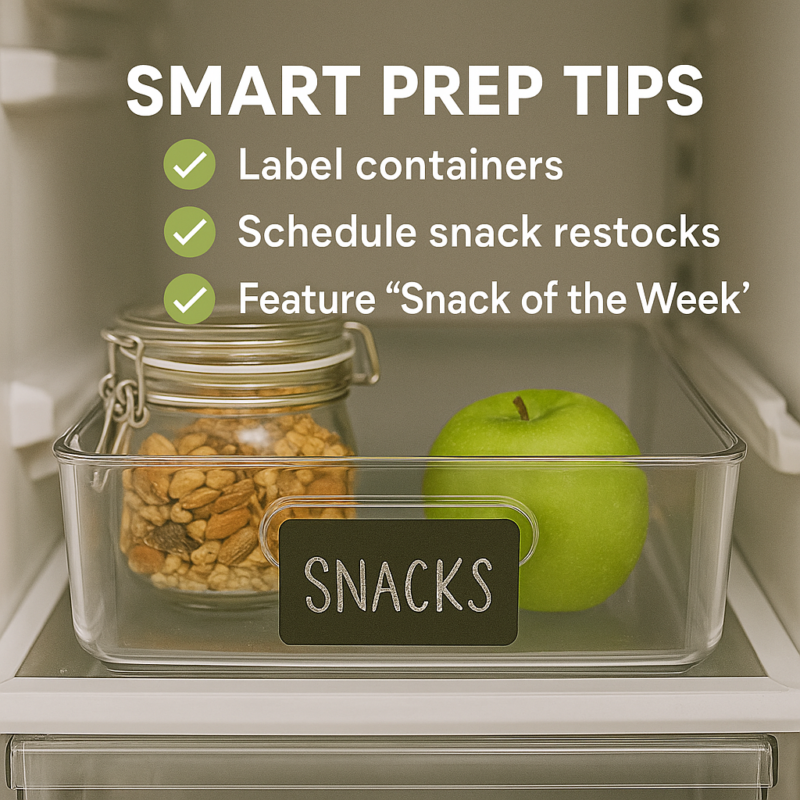 | Schedule snack restocks | A quick 10-minute restock on Mondays and Thursdays keeps you stocked and your sanity intact |