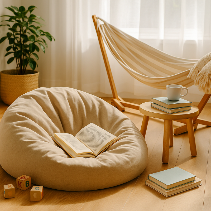 Make a cozy corner with a hammock, lawn chair, or even a stack of pillows or bean bag and your favorite book. Take shifts with your partner and actually rest while the kids are occupied.