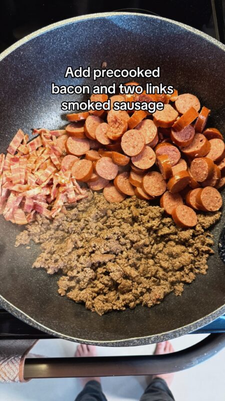 This isn’t your average chili. It’s packed with flavor thanks to Portuguese sausage (or beef kielbasa if you can’t find it), crispy bacon, tender ground beef, and a few fun, unexpected ingredients—like mayonnaise (trust me on this one, mama!). This chili is rich, thick, and perfect for busy weeknights, chilly evenings, or meal prepping for the week ahead.